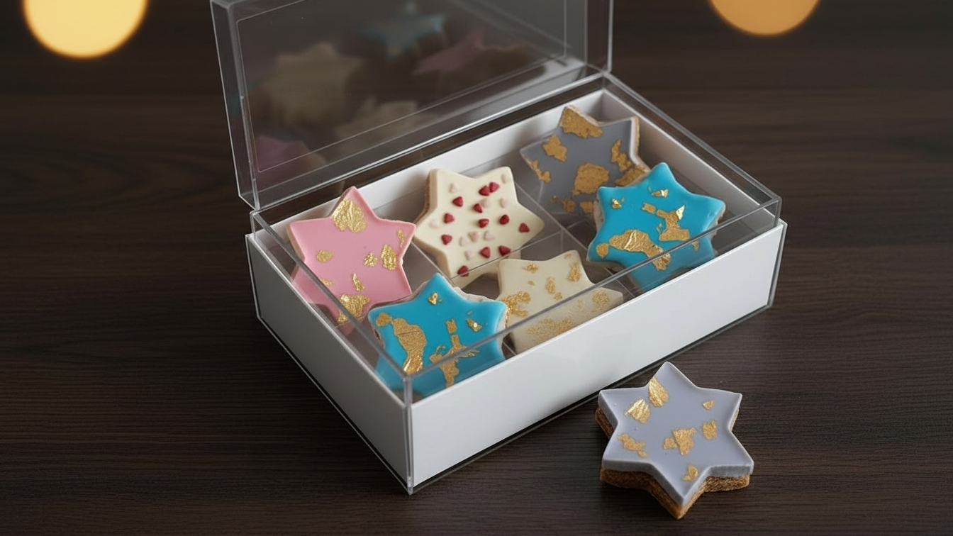 A sparkling collection of six beautifully crafted star-shaped chocolates, made with smooth, rich chocolate for a truly indulgent experience. Perfect for celebrations, gifting, or adding a touch of magic to any moment.