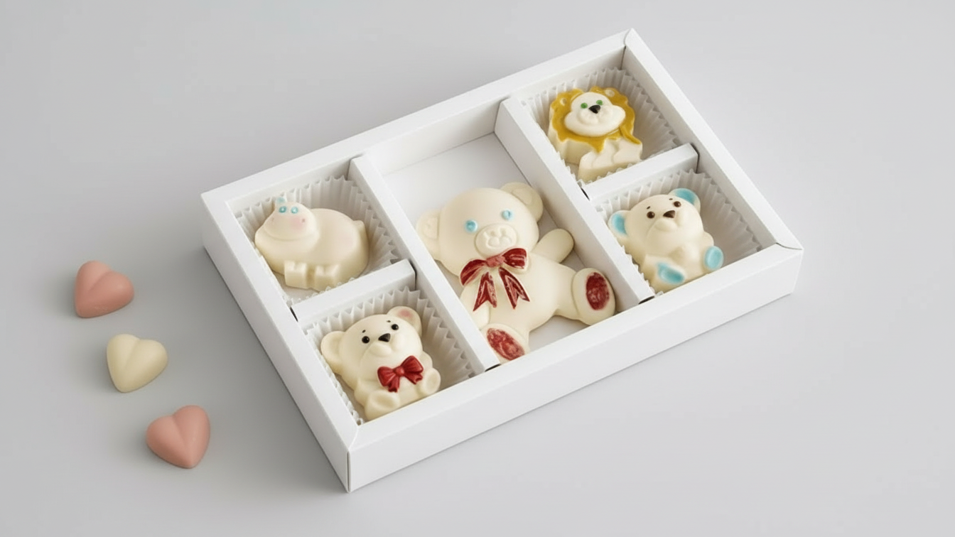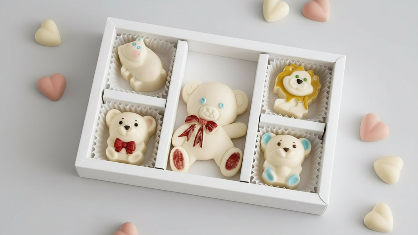 A heartwarming collection of adorable teddy bear–shaped chocolates, crafted from the finest smooth, rich chocolate for an irresistibly indulgent experience. Perfectly molded and delightfully cute, each teddy bear is a little piece of joy that melts luxuriously in your mouth.